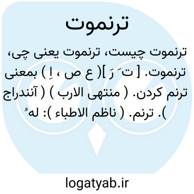 ترنموت. [ ت َ رَ ]( ع ص، اِ ) بمعنی ترنم کردن. ( منتهی الارب ) ( آنندراج ). ترنم. ( ناظم الاطباء ): له ُ رنمة حسنه؛ ای ترنم حسن.( اقرب الموارد ). || قوس ٌ ترنموت، کمان که بانگ کند درکشیدن. ( منتهی الارب ) ( آنندراج ) ( از اقرب الموارد ). «ت » را در اول آن افزایند چنانکه در تذنوب افزایند و «واو» و تا را ایضاً در آخر اضافه کنند چنانکه در ملکوت اضافه میکنند. ( از اقرب الموارد ).