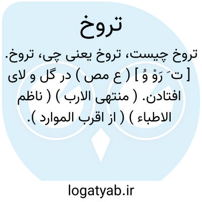 تروخ. [ ت َ رَوْ وُ ] ( ع مص ) در گل و لای افتادن. ( منتهی الارب ) ( ناظم الاطباء ) ( از اقرب الموارد ).