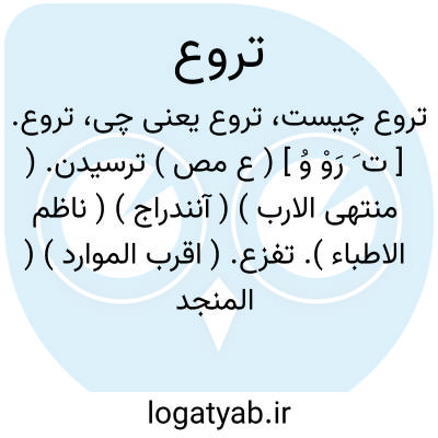 تروع. [ ت َ رَوْ وُ ] ( ع مص ) ترسیدن. ( منتهی الارب ) ( آنندراج ) ( ناظم الاطباء ). تفزع. ( اقرب الموارد ) ( المنجد ).