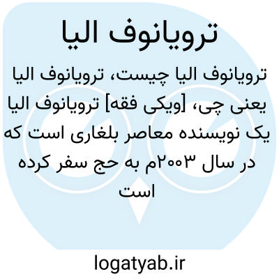 [ویکی فقه] ترویانوف الیا یک نویسنده معاصر بلغاری است که در سال ۲۰۰۳م به حج سفر کرده است و همچنین نگارنده سفرنامه بمبئی تا مکه می باشد.