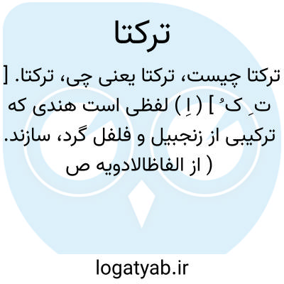 ترکتا. [ ت ِ ک ُ ] ( اِ ) لفظی است هندی که ترکیبی از زنجبیل و فلفل گرد، سازند. ( از الفاظالادویه ص 73 ).