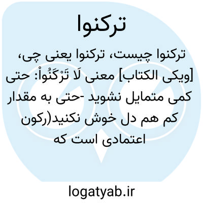 [ویکی الکتاب] معنی لَا تَرْکَنُواْ: حتی کمی متمایل نشوید -حتی به مقدار کم هم دل خوش نکنید(رکون اعتمادی است که توأم با میل باشد،به معنای میل کردن به سوی چیزی و تسکین دادن خاطر به وسیله آن است، و کلمه رکن - به ضم اول آن - به معنای ناحیه قویتر و اصلی تر هر چیز است )