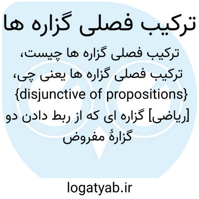 {disjunctive of propositions} [ریاضی] گزاره ای که از ربط دادن دو گزارۀ مفروض به وسیلۀ کلمۀ «یا» به دست می آید