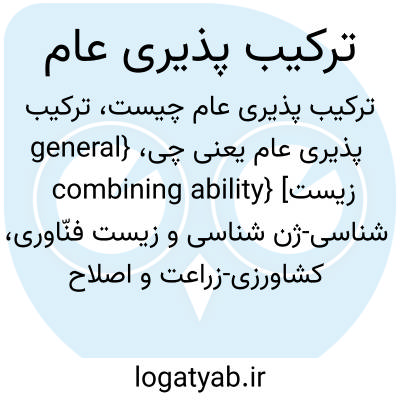 {general combining ability} [زیست شناسی-ژن شناسی و زیست فنّاوری، کشاورزی-زراعت و اصلاح نباتات] متوسط نمود یک رگه در تلاقی با چند رگۀ دیگر که به صورت انحراف از میانگین جمعیت یا تمام دورگه ها نشان داده می شود