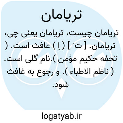 تریامان. [ ت َ ] ( اِ ) غافث است. ( تحفه حکیم مؤمن ).نام گلی است. ( ناظم الاطباء ). و رجوع به غافث شود.