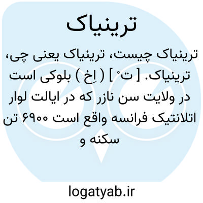 لغت نامه دهخدا ترینیاک. [ ت ْ ] ( اِخ ) بلوکی است در ولایت سن نازر که در ایالت لوار اتلانتیک فرانسه واقع است 6900 تن سکنه و کارخانه استخراج فلزات دارد.
