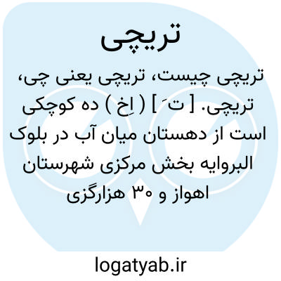 تریچی. [ ت َ ] ( اِخ ) ده کوچکی است از دهستان میان آب در بلوک البروایه بخش مرکزی شهرستان اهواز و 30 هزارگزی شمال اهواز به اندیمشک واقع است و 50 تن سکنه دارد. ( از فرهنگ جغرافیایی ایران ج 6 ).