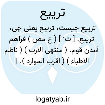 لغت نامه دهخدا ترییع. [ ت َ ] ( ع مص ) فراهم آمدن قوم. ( منتهی الارب ) ( ناظم الاطباء ) ( اقرب الموارد ). || پاکیزه و افزون شدن طعام و جز آن. || پاکیزه وافزون گردانیدن طعام و جز آن. ( از اقرب الموارد ).
