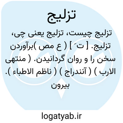 تزلیج. [ ت َ ] ( ع مص )برآوردن سخن را و روان گردانیدن. ( منتهی الارب ) ( آنندراج ) ( ناظم الاطباء ). بیرون کردن سخن و روان گردانیدن آن یعنی افشای آن. ( از اقرب الموارد ). افشای سخن بین مردم. ( از المنجد ). || به اندک چیزی زندگی را بسر بردن. ( منتهی الارب ) ( آنندراج ) ( ناظم الاطباء ) ( از متن اللغة ) ( از اقرب الموارد ) ( از المنجد ).
