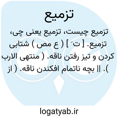 تزمیع. [ ت َ ] ( ع مص ) شتابی کردن و تیز رفتن ناقه. ( منتهی الارب ). || بچه ناتمام افکندن ناقه. ( از متن اللغة ) ( از اقرب الموارد ): زَمَّعت الناقةُ؛ القت ولدها. ( متن اللغة ).زمعت الناقة؛ رمَّعت. ( اقرب الموارد ). رجوع به ترمیعشود. || تزمیع بر کاری، اراده استوار کردن بر آن. ( از متن اللغة ) ( از اقرب الموارد ) ( از المنجد ). || بانگ کردن زنبور. ( از متن اللغة ).