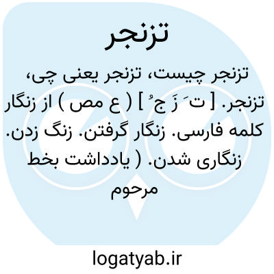 تزنجر. [ ت َ زَ ج ُ ] ( ع مص ) از زنگار کلمه فارسی. زنگار گرفتن. زنگ زدن. زنگاری شدن. ( یادداشت بخط مرحوم دهخدا ): و اذا رش علیه الخل تزنجر. ( ابن البیطار ج 1 ص 145 شش سطر بآخر مانده ). و هو [ ای النحاس ] یتزنجربالخل و الروسختج المحرق منه بالایقال اوفی اتون الزجاج. ( الجماهر فی الجواهر للبیرونی یادداشت ایضاً ).
