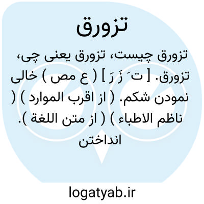 لغت نامه دهخدا تزورق. [ ت َ زَ رَ ] ( ع مص ) خالی نمودن شکم. ( از اقرب الموارد ) ( ناظم الاطباء ) ( از متن اللغة ). انداختن آنچه در شکم بود و ریخ زدن. ( منتهی الارب ).