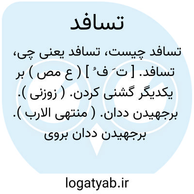 تسافد. [ ت َ ف ُ ] ( ع مص ) بر یکدیگر گشنی کردن. ( زوزنی ). برجهیدن ددان. ( منتهی الارب ). برجهیدن ددان بروی یکدیگر. ( ناظم الاطباء ).جماع کردن بهائم. ( غیاث اللغات ) ( آنندراج ). برجستن نر بماده. ( از متن اللغة ). قدیقال فی غیرالانسان کالنکاح والمباشرة و المجامعة فی الانسان. ( بحر الجواهر ).