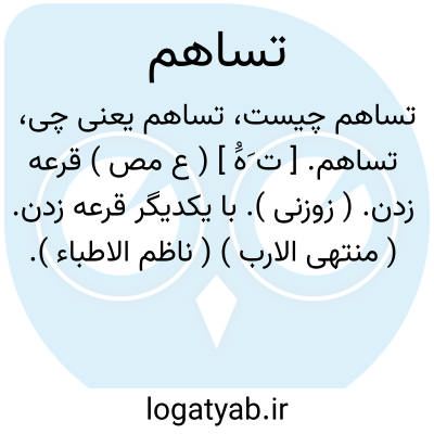 تساهم. [ ت َهَُ ] ( ع مص ) قرعه زدن. ( زوزنی ). با یکدیگر قرعه زدن. ( منتهی الارب ) ( ناظم الاطباء ). تقارع. ( متن اللغة ) ( اقرب الموارد ) ( المنجد ). || تقسیم کردن چیزی. ( از متن اللغة ) ( از اقرب الموارد ) ( از المنجد ).