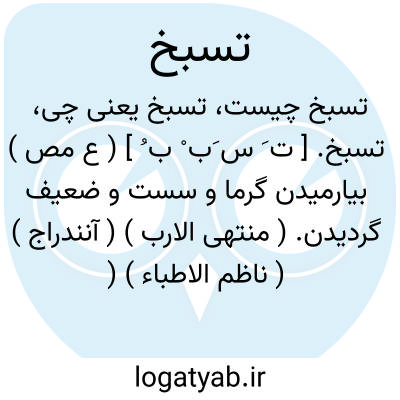 تسبخ. [ ت َ س َب ْ ب ُ ] ( ع مص ) بیارمیدن گرما و سست و ضعیف گردیدن. ( منتهی الارب ) ( آنندراج ) ( ناظم الاطباء ) ( از متن اللغة ). بیارمیدن و سست و ضعیف گردیدن گرما و خشم. ( از اقرب الموارد ) ( از المنجد ).