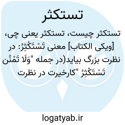 [ویکی الکتاب] معنی تَسْتَکْثِرُ: در نظرت بزرگ بیاید(در جمله "وَلَا تَمْنُن تَسْتَکْثِرُ "کارخیرت در نظرت بزرگ نیاید)