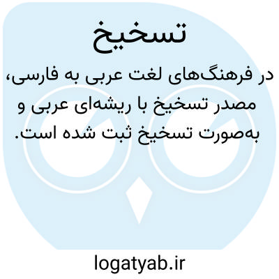 در فرهنگ‌های لغت عربی به فارسی، مصدر تَسخیخ با ریشه‌ای عربی و به‌صورت تَسخیخ ثبت شده است. این واژه در حوزهٔ فعل‌های زبان عربی جای می‌گیرد و به‌عنوان یک مصدر به کار می‌رود. بر اساس منبع معتبر تاج‌المصادر بیهقی، معنای اصلی این مصدر، فروراندنِ پایِ ملخ در زمین است. این تعریف نشان می‌دهد که این واژه برای توصیف یک حرکت یا رفتار خاص حشره، یعنی فروبردن اندام‌های خود در خاک، به کار می‌رفته است. با توجه به ساختار لغوی و کاربرد تخصصی آن، می‌توان دریافت که این کلمه در متون کهن و برای بیان دقیق یک مفهوم طبیعی مورد استفاده قرار می‌گرفته و امروزه در زبان روزمره فارسی کاربردی ندارد و بیشتر در متون تاریخی و لغوی می‌توان ردپای آن را مشاهده کرد.