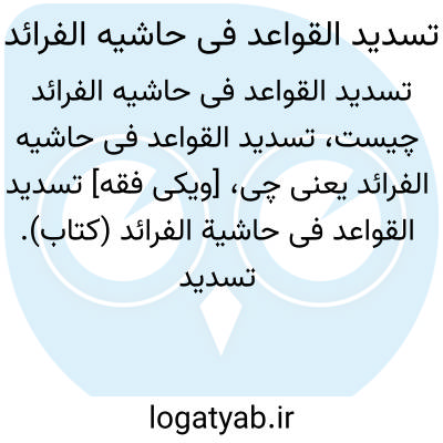 [ویکی نور] تسدید القواعد فی حاشیة الفرائد، به زبان عربی، اثر آیت الله شیخ محمد امامی خوانساری، مشتمل بر اشارات و مشحون از بیاناتی است در جهت تبیین و ایضاح«رسائل» شیخ انصاری.