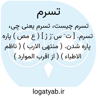 تسرم. [ ت َ س َرْ رُ ] ( ع مص ) پاره پاره شدن. ( منتهی الارب ) ( ناظم الاطباء ) ( از اقرب الموارد ) ( از المنجد ).