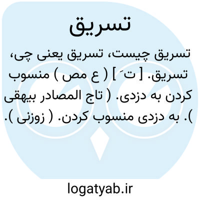تسریق. [ ت َ ] ( ع مص ) منسوب کردن به دزدی. ( تاج المصادر بیهقی ). به دزدی منسوب کردن. ( زوزنی ). به دزدی منسوب کردن کسی را. ( منتهی الارب ) ( آنندراج ) ( ناظم الاطباء ) ( از متن اللغة ) ( از المنجد ) ( از اقرب الموارد ). || دزدی کردن. ( بمعنی سرق ) ( اقرب الموارد ) ( از المنجد ): «لاتحسبن دراهماً سرَّقتها». ( اقرب الموارد ).