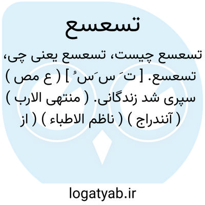 تسعسع. [ ت َ س َس ُ ] ( ع مص ) سپری شد زندگانی. ( منتهی الارب ) ( آنندراج ) ( ناظم الاطباء ) ( از متن اللغة ) ( از اقرب الموارد ) ( از المنجد ). || پیر و خرف شدن مرد. ( منتهی الارب ) ( آنندراج ) ( ناظم الاطباء ) ( از متن اللغة ). || بیشتر گذشتن از ماه. ( منتهی الارب ) ( آنندراج ) ( ناظم الاطباء ). بیشتر روزهای ماه سپری شدن. ( از متن اللغة ) ( از اقرب الموارد ). || نزدیک نهادن پیرمرد گامها را و لرزیدن از پیری. ( از متن اللغة ).نزدیک نهادن گامها. ( از اقرب الموارد ) ( از المنجد ). || برهنه شدن دندان از لب. ( منتهی الارب ) ( آنندراج ) ( ناظم الاطباء ) ( از متن اللغة ) ( از اقرب الموارد ). || فرو افتادن حال کسی. ( منتهی الارب ) ( آنندراج ) ( ناظم الاطباء ). انحطاط حال کسی. ( از متن اللغة ) ( از اقرب الموارد ). || بد حال شدن. ( منتهی الارب ) ( آنندراج ) ( ناظم الاطباء ). دگرگون و فاسد شدن هر چیز. ( از متن اللغة ) ( از اقرب الموارد ).
