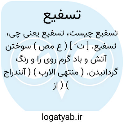 لغت نامه دهخدا تسفیع. [ ت َ ] ( ع مص ) سوختن آتش و باد گرم روی را و رنگ گردانیدن. ( منتهی الارب ) ( آنندراج ) ( از ناظم الاطباء ) ( از متن اللغة ) ( از اقرب الموارد ).