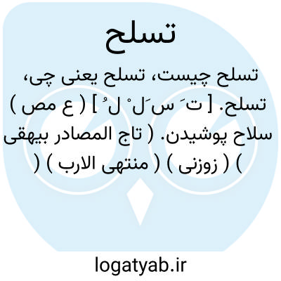 تسلح. [ ت َ س َل ْ ل ُ ] ( ع مص ) سلاح پوشیدن. ( تاج المصادر بیهقی ) ( زوزنی ) ( منتهی الارب ) ( آنندراج ) ( ناظم الاطباء ) ( از متن اللغة ) ( از اقرب الموارد ) ( از المنجد ). || خوش آمدن شتر حامل سلاح بدیدار و چاق نمودن آن در چشم، تسلحت الابل بأسلحتها؛ سمنت و حسنت فی عینک. ( از متن اللغة ).