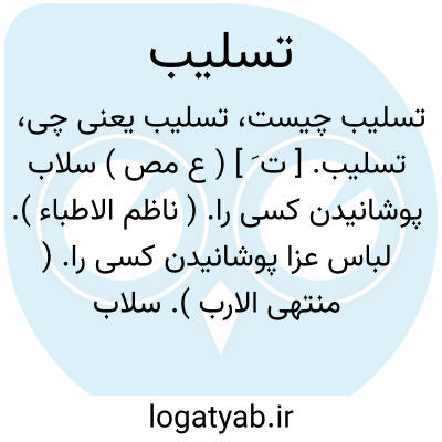 تسلیب. [ ت َ ] ( ع مص ) سلاب پوشانیدن کسی را. ( ناظم الاطباء ). لباس عزا پوشانیدن کسی را. ( منتهی الارب ). سلاب وجامه ماتم پوشانیدن کسی را. ( ناظم الاطباء ). لباس عزا پوشانیدن زن را. ( از متن اللغة ). || مردن بچه زن یا ناقه یا بچه ناتمام انداختن زن یا ناقه. ( از قطرالمحیط ) ( از اقرب الموارد ) ( از المنجد ).