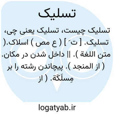 تسلیک. [ ت َ ] ( ع مص ) اسلاک.( متن اللغة ). || داخل شدن در مکان. ( از المنجد ). پیچاندن رشته را بر مِسلَکَة. ( از المنجد ).