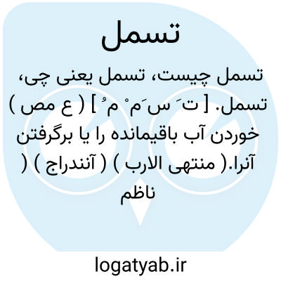 تسمل. [ ت َ س َم ْ م ُ ] ( ع مص ) خوردن آب باقیمانده را یا برگرفتن آنرا.( منتهی الارب ) ( آنندراج ) ( ناظم الاطباء ) ( از متن اللغة ) ( از اقرب الموارد ). نوشیدن آب قلیل. ( از المنجد ). || ستیهیدن در نوشیدن نبیذ. ( منتهی الارب ) ( آنندراج ) ( ناظم الاطباء ). پافشاری کردن در نوشیدن شراب. ( از اقرب الموارد ) ( از متن اللغة ) ( از المنجد ).