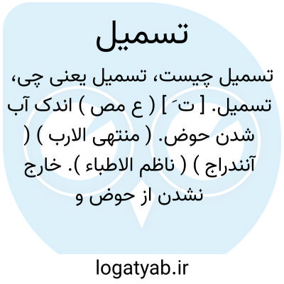 تسمیل. [ ت َ ] ( ع مص ) اندک آب شدن حوض. ( منتهی الارب ) ( آنندراج ) ( ناظم الاطباء ). خارج نشدن از حوض و دلو جز آب کمی. ( از متن اللغة ) ( از اقرب الموارد ) ( از المنجد ). آب اندک آوردن دلو. || گل و لای آوردن دلو از چاه. || گل و لای آوردن دلو از چاه. ( منتهی الارب ) ( آنندراج ) ( ناظم الاطباء ). || پاک کردن حوض را از گل و لای. || نرمی کردن با کسی به سخن. ( منتهی الارب ) ( آنندراج ) ( ناظم الاطباء ) ( از متن اللغة ) ( از اقرب الموارد ) ( از المنجد ).