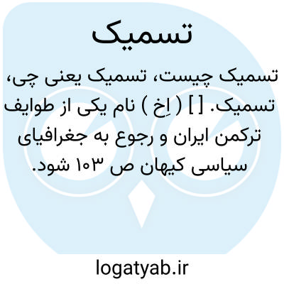 تسمیک. [ ] ( اِخ ) نام یکی از طوایف ترکمن ایران و رجوع به جغرافیای سیاسی کیهان ص 103 شود.