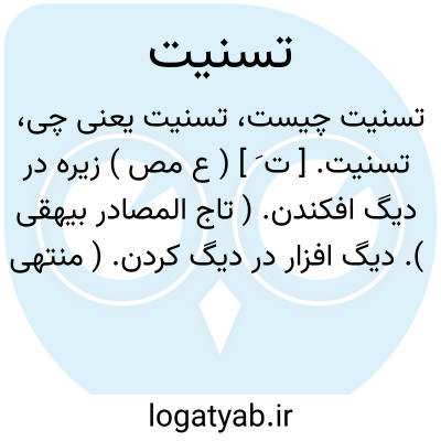 تسنیت. [ ت َ ] ( ع مص ) زیره در دیگ افکندن. ( تاج المصادر بیهقی ). دیگ افزار در دیگ کردن. ( منتهی الارب ) ( آنندراج ) ( ناظم الاطباء ) ( از متن اللغة ) ( از اقرب الموارد ) ( از المنجد ).