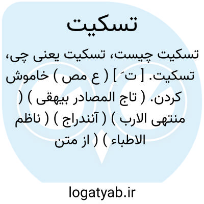 تسکیت. [ ت َ ] ( ع مص ) خاموش کردن. ( تاج المصادر بیهقی ) ( منتهی الارب ) ( آنندراج ) ( ناظم الاطباء ) ( از متن اللغة ) ( از اقرب الموارد ) ( از المنجد ).
