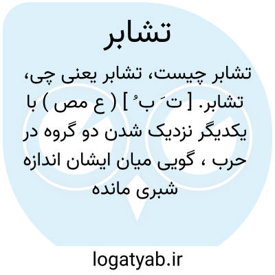 تشابر. [ ت َ ب ُ ] ( ع مص ) با یکدیگر نزدیک شدن دو گروه در حرب، گویی میان ایشان اندازه شبری مانده است. ( منتهی الارب ). نزدیک شدن دو گروه در جنگ چنانکه میان آنان فاصله وجبی باشد. ( از اقرب الموارد ) ( از المنجد ). تقارب در جنگ. ( از متن اللغة ).