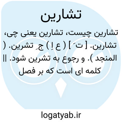 تشارین. [ ت َ ] ( ع اِ ) ج ِ تشرین. ( المنجد ). و رجوع به تشرین شود. || کلمه ای است که بر فصل خریف ( پاییز ) دلالت کند. ( از المنجد ). || در نزد مردم برگ درخت توت است که در این دو ماه ( تشرین اول و تشرین دوم ) از درخت چیده و بمصرف تغذیه گاو و غیره رسانند. ( از المنجد ).