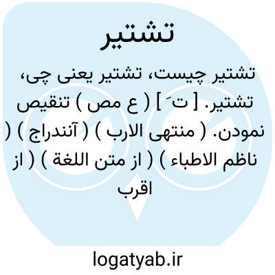 تشتیر. [ ت َ ] ( ع مص ) تنقیص نمودن. ( منتهی الارب ) ( آنندراج ) ( ناظم الاطباء ) ( از متن اللغة ) ( از اقرب الموارد ) ( از المنجد ). || عیب کردن. ( تاج المصادر بیهقی ) ( زوزنی ). عیب کردن کسی را. ( منتهی الارب ) ( آنندراج ) ( ناظم الاطباء ) ( از اقرب الموارد ). عیب کردن و بد گفتن و بد شنوانیدن کسی را. ( از المنجد ). بد گفتن کسی را. ( از متن اللغة ). || پلک چشم گردانیدن. ( منتهی الارب ) ( آنندراج ) ( ناظم الاطباء ) ( از اقرب الموارد ) ( از المنجد ).