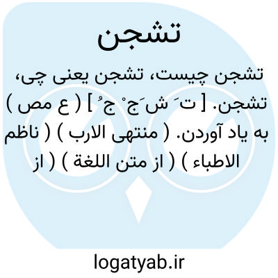 تشجن. [ ت َ ش َج ْ ج ُ ] ( ع مص ) به یاد آوردن. ( منتهی الارب ) ( ناظم الاطباء ) ( از متن اللغة ) ( از اقرب الموارد ) ( از المنجد ). || بهم درشدن درخت. ( منتهی الارب ) ( ناظم الاطباء ). بهم درآمدن و در یکدیگر شدن شاخه های درخت. ( از متن اللغة ) ( از اقرب الموارد ) ( از المنجد ). || غمگین شدن بر کسی. ( از متن اللغة ). اندوهگین شدن. ( از المنجد ). || تحرک. ( متن اللغة ) ( المنجد ).