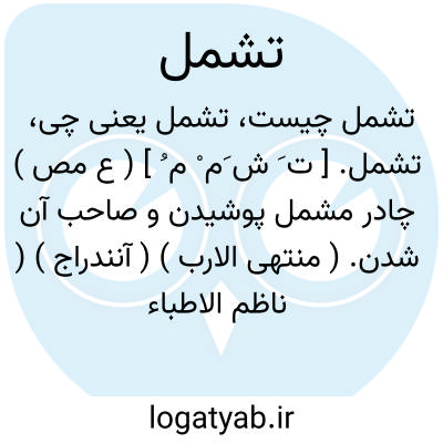 لغت نامه دهخدا تشمل. [ ت َ ش َم ْ م ُ ] ( ع مص ) چادر مشمل پوشیدن و صاحب آن شدن. ( منتهی الارب ) ( آنندراج ) ( ناظم الاطباء ).
