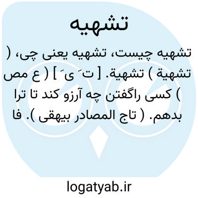 ( تشهیة ) تشهیة. [ ت َ ی َ ] ( ع مص ) کسی راگفتن چه آرزو کند تا ترا بدهم. ( تاج المصادر بیهقی ). فا کسی گفتن ترا چه آرزو می باشد تا ترا آن بدهم. ( زوزنی ). بر خواهانی چیزی انگیختن کسی را. ( منتهی الارب ) ( آنندراج ) ( از ناظم الاطباء ) ( از اقرب الموارد ).