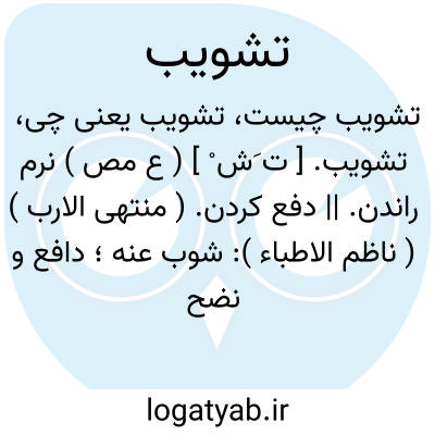 تشویب. [ ت َش ْ ] ( ع مص ) نرم راندن. || دفع کردن. ( منتهی الارب ) ( ناظم الاطباء ): شوب عنه؛ دافع و نضح عنه فلم یبالغ. ( اقرب الموارد ).