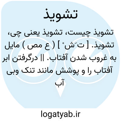 تشویذ. [ ت َش ْ ] ( ع مص ) مایل به غروب شدن آفتاب. || درگرفتن ابر آفتاب را و پوشش مانند تنک وبی آب گرداگرد آن شدن. || عمامه بر سر بستن. ( منتهی الارب ) ( ناظم الاطباء ) ( از اقرب الموارد ).