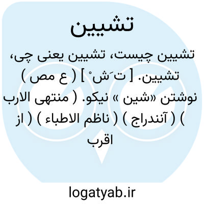 لغت نامه دهخدا تشیین. [ ت َش ْ ] ( ع مص ) نوشتن «شین » نیکو. ( منتهی الارب ) ( آنندراج ) ( ناظم الاطباء ) ( از اقرب الموارد ).