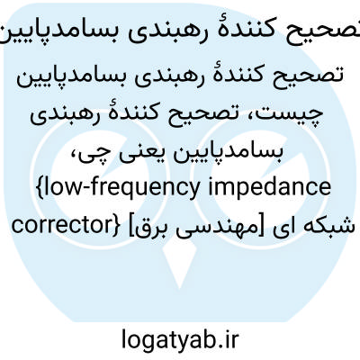 {low-frequency impedance corrector} [مهندسی برق] شبکه ای متصل به یک شبکۀ اصلی (basic network ) که ترکیب آن در بسامدهای پایین رهبندی سر خط را شبیه سازی می کند