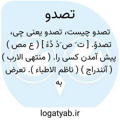 تصدؤ. [ ت َ ص َدْ دُءْ ] ( ع مص ) پیش آمدن کسی را. ( منتهی الارب ) ( آنندراج ) ( ناظم الاطباء ). تعرض به کسی. ( از اقرب الموارد ).