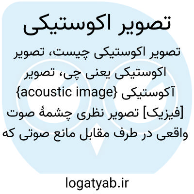 {acoustic image} [فیزیک] تصویر نظری چشمۀ صوت واقعی در طرف مقابل مانع صوتی که شبیه به تصویر اپتیکی است
