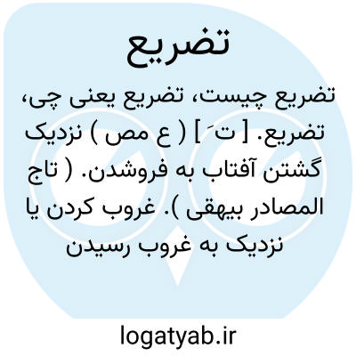 تضریع. [ ت َ ] ( ع مص ) نزدیک گشتن آفتاب به فروشدن. ( تاج المصادر بیهقی ). غروب کردن یا نزدیک به غروب رسیدن آفتاب. ( منتهی الارب ) ( ناظم الاطباء ) ( از اقرب الموارد ). || خوب ناپختن شیره را. ( منتهی الارب ) ( از اقرب الموارد ). || وقت فرودآوردن از دیگدان رسیدن دیگ را. || قریب به پویه دویدن. ( منتهی الارب ) ( آنندراج ) ( ناظم الاطباء ) ( از اقرب الموارد ).
