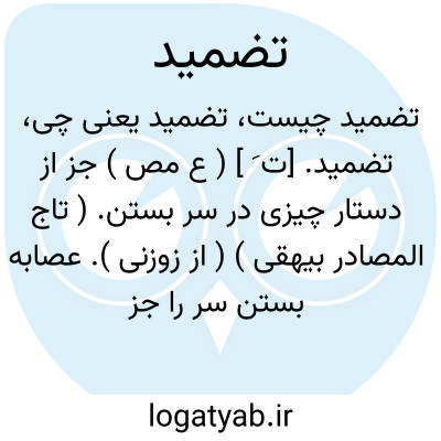 تضمید. [ت َ ] ( ع مص ) جز از دستار چیزی در سر بستن. ( تاج المصادر بیهقی ) ( از زوزنی ). عصابه بستن سر را جز عمامه.( منتهی الارب ) ( آنندراج ) ( ناظم الاطباء ) ( از اقرب الموارد ). || بر جراحت ضماد بستن. ( منتهی الارب ) ( آنندراج ) ( ناظم الاطباء ). ضماد بر جراحت و خستگی کردن. ( از اقرب الموارد ). || آلودن چیزی را به چیزی. ( منتهی الارب ) ( آنندراج ) ( ناظم الاطباء ).
