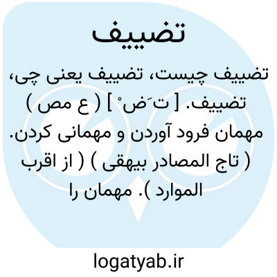 تضییف. [ ت َض ْ ] ( ع مص ) مهمان فرود آوردن و مهمانی کردن. ( تاج المصادر بیهقی ) ( از اقرب الموارد ). مهمان را فرود آوردن. ( زوزنی ) ( ترجمان جرجانی ترتیب عادل بن علی ). مهمانی کردن. ( دهار ). مهمان داشتن کسی را. || به فروشدن نزدیک گشتن آفتاب. || میل دادن چیزی را به چیزی. ( منتهی الارب ) ( آنندراج ) ( ناظم الاطباء ) ( از اقرب الموارد ).