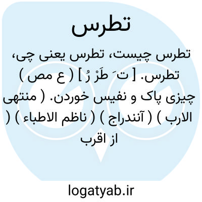 تطرس. [ ت َ طَرْ رُ ] ( ع مص ) چیزی پاک و نفیس خوردن. ( منتهی الارب ) ( آنندراج ) ( ناظم الاطباء ) ( از اقرب الموارد ): هویتطرز فی اللباس و یتطرس فی المطعم؛ ای یتنوق فلایلبس الا فاخراً و لایأکل الا طیباً. ( از اقرب الموارد ). || بری گردیدن. ( منتهی الارب ) ( از آنندراج ) ( ناظم الاطباء ). پرهیز کردن از چیزی. ( منتهی الارب ) ( آنندراج ) ( ناظم الاطباء ) ( از اقرب الموارد ).
